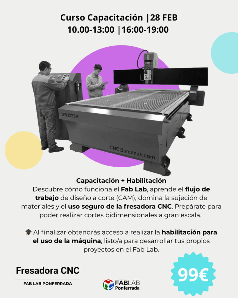 Al finalizar, obtendrás acceso a realizar la habilitación oficial: podrás reservar y usar la fresadora para tus propios proyectos con total autonomía. * Se realizará en otro día