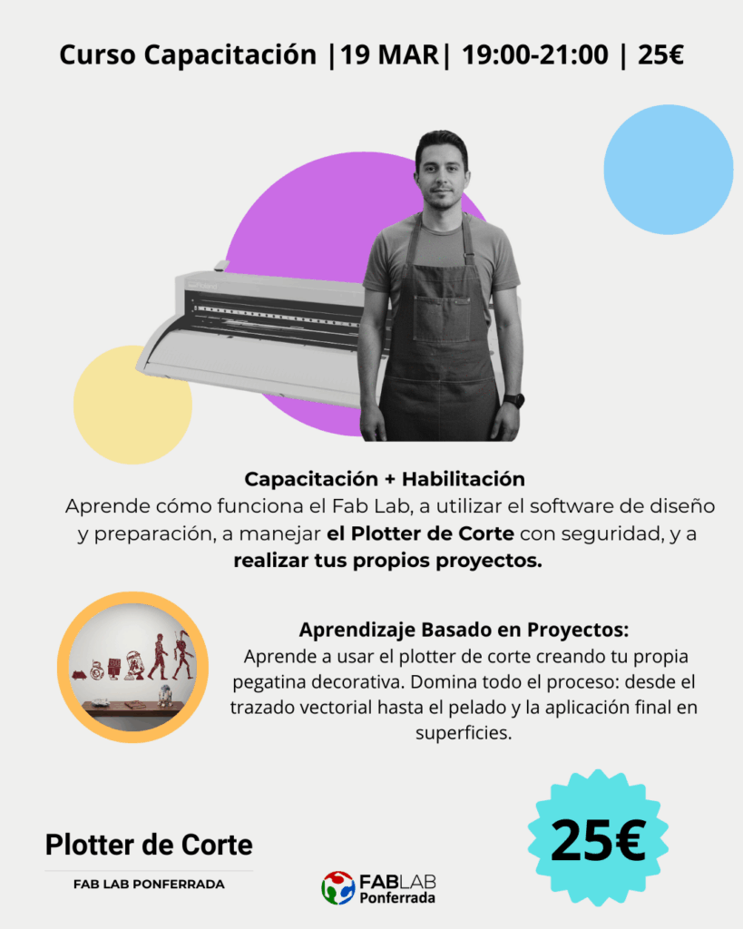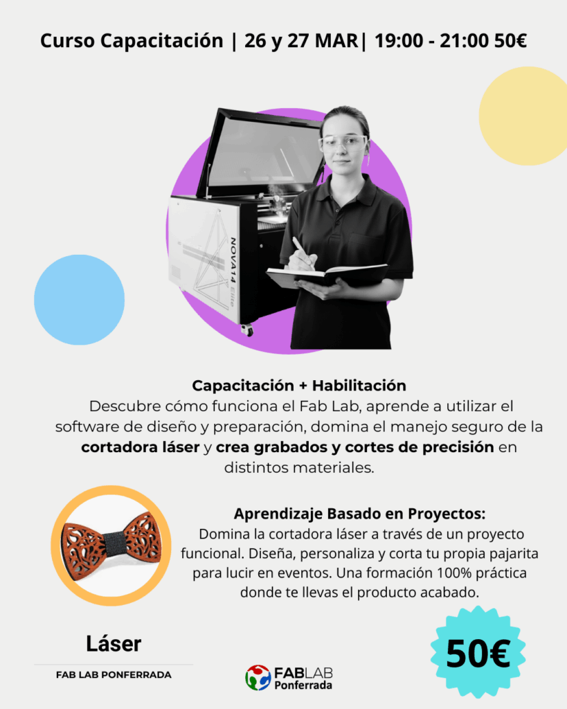 Durante el curso te familiarizarás con el espacio, normas y recursos del Fab Lab.