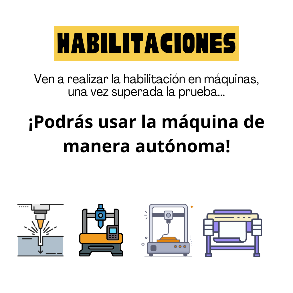 Recomendamos realizar la formación en capacitación en uso de máquinas del Fab Lab Ponferrada, de esta manera te aseguras salir con las nociones necesarias para lograr superar este proceso de habilitación.